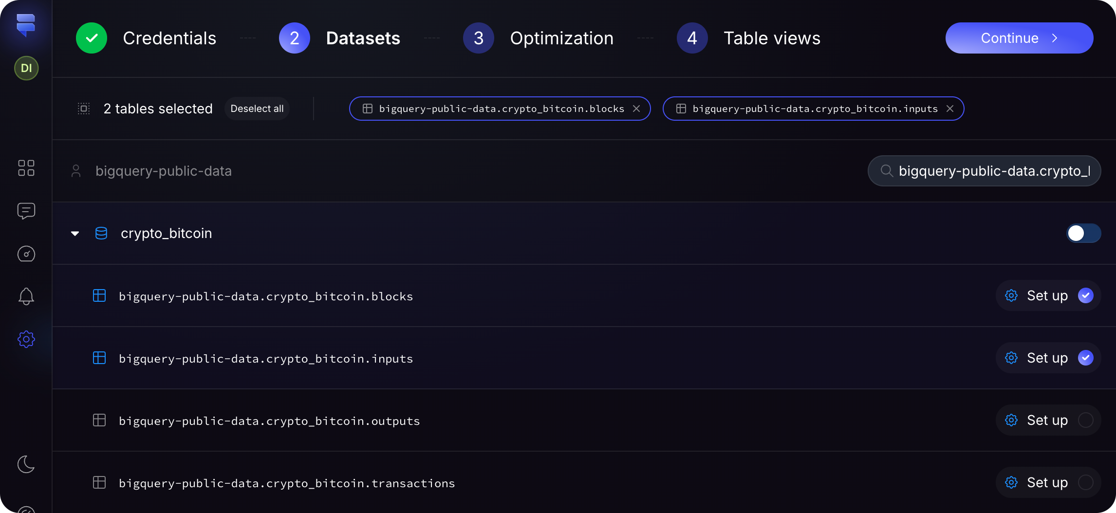 Select the relevant tables from your dataset that you want to include in the