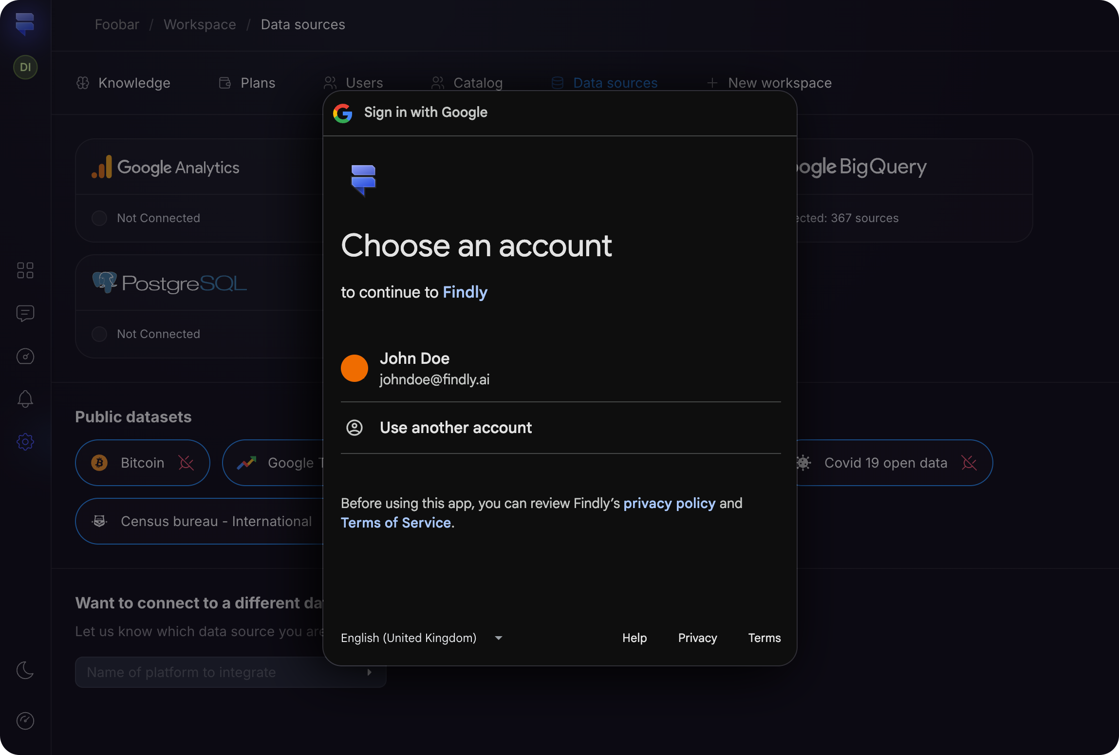 Follow the Google authorization prompts to grant Findly access to your Google Analytics data.
